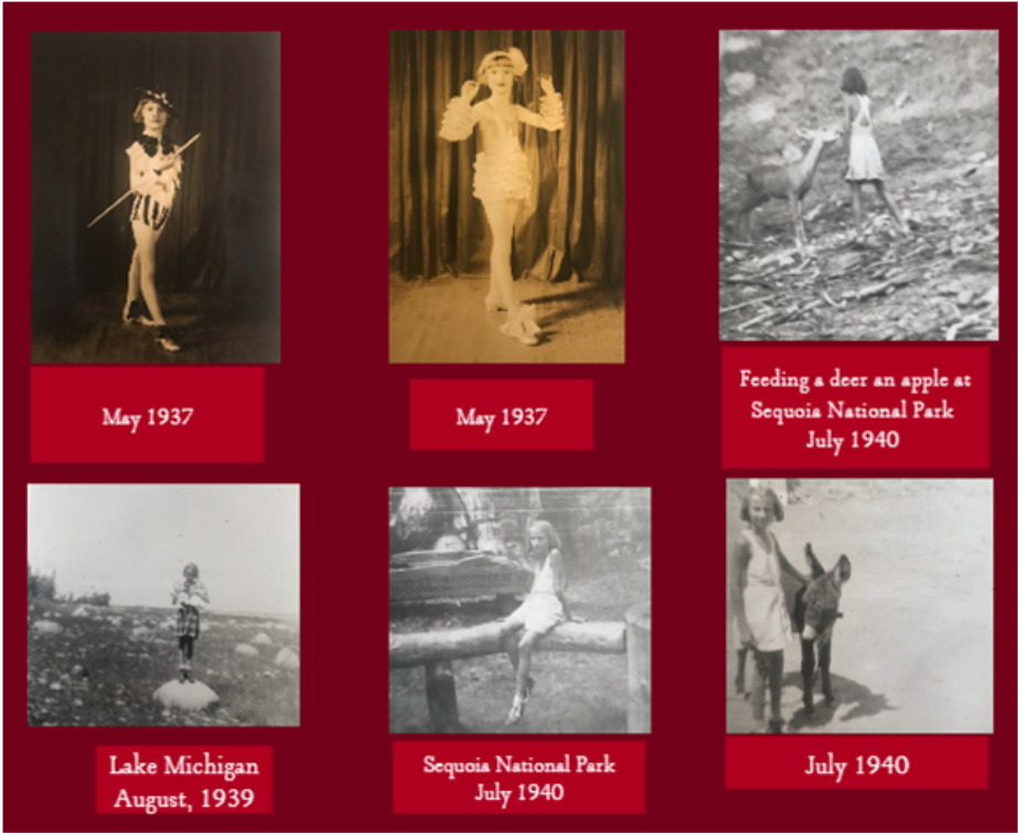 Carolyn’s childhood was filled with change. From birth to age twelve she moved nine times from Pittsburgh, PA to between Charleston, WV and Huntington, WV, living in nine different houses. This was challenging for Carolyn, the moving meant constantly making new friends. However, looking back Carolyn believes that this change was for the best. She was fortunate enough to have a stable home, where her mother and father were always a strong guiding education force and although the change was difficult, she values the experiences and varied adventures she had. Moving schools allowed her to interact with different people and learn how to make friends. She spent much of her time with her mother and with her father at home. They played games together, like Parcheesi, Chinese Checkers, Sorry and Monopoly. She enjoyed solitary projects like coloring books, playing with dolls, and playing with cut out dolls. Her favorite dolls were the Dy-Dee doll which you could feed a bottle and a Snow White doll she got at seven years old. Carolyn and her mother would go to the store to buy fabric and look at pattern books and deciding what clothes she wanted. Her mother was a professional grade seamstress and made all of Carolyn’s dresses and dance costumes. At four years old she idolized Shirley Temple and at age seven she admired the singers Jeanette MacDonald and Nelson Eddie. Despite moving, her mother sought to add some normalcy to her daughter’s life by encouraging her to take dance lessons.