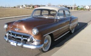 Of course Dad worked for GMAC so he got to buy the car with his employee discount and he chose the car for me. He got the loan for me, but it was in my name, and that helped me get credit. But I had to take the car he picked. Ugh! At 21! Anyway, he chose a brand new 1953 Chevrolet 4 door Belle Aire with a gorgeous, beautiful light beige top and dark brown bottom. But it was MY car and it was brand new, so I didn’t complain about the color. I was happy to get back and forth to work on my own and be independent.