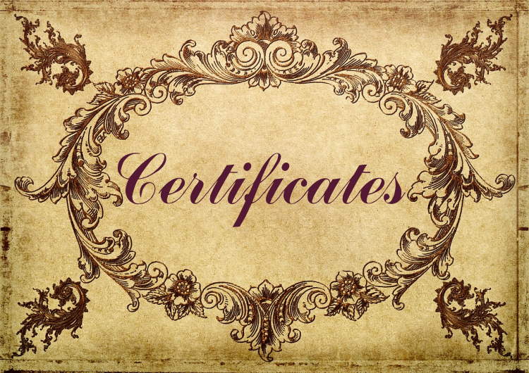 List of certificates, diplomas, etc. issued to Ennis B. Hunt and Ruth Lucille Brown Hunt, 1907 to ?