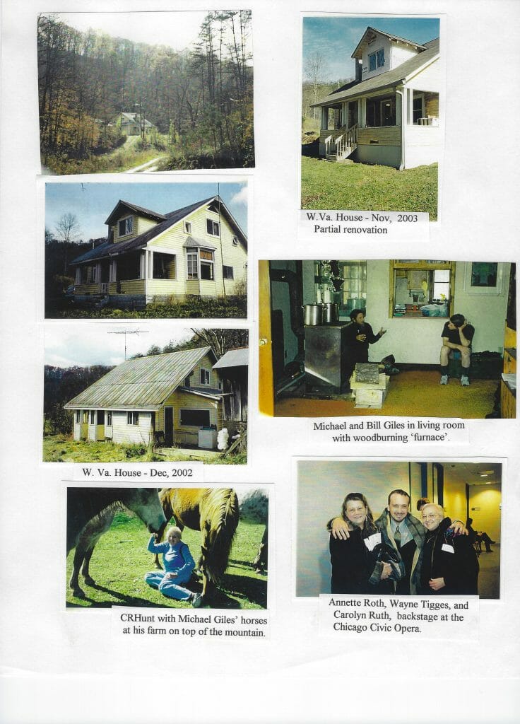 It seems like 80% of this year has been devoted to Bill and his W. Va. House – like I was living his life, not mine. When I got sick, all 3 of my doctors, separately, and strongly with firm resolution, told me: “Carolyn, you have to forget everything else and take care of #1 – Yourself.” And that is my mantra and resolution, now and for the entire coming year. I have had some wonderful, happy times thruout the year. In March, Annette Roth, her daughter Caroline, and I drove to Chicago, met Marienne Skinner and we went to the Chicago Civic Opera to see Verdi’s “Masked Ball” starring Neil Shicoff and Dmitri Hvorostovsky — with Wayne Tigges in a large supporting role. Annette and I sang with Wayne at the Presby. Church Choir when he was at CCM (UC Cin.Conservatory of Music). He was thrilled to have his friends/fans from Cincy show up backstage to see him — and ignore Neil Shicoff – Ha. In June, my Sheltie, Brandy age 9, developed diabetes so I now have lots of vet visits and a strict feeding schedule (every 12 hrs) with insulin shots. Cookie (12) is fine. She spent a lot of time with Annette and her new, assertive large black puppy (while Brandy went to W. Va. with me) and developed a whole new interesting personality! Also, in June, I became President of our chapter of Phi Beta, a national fine arts fraternity whose members are trained and work professionally in theater, dance, art, music, etc. We had our usual Flea Market in July and decided it was too much hard work for “us little old ladies” for the return on our money to do it again. My agenda for the year as Pres. is to increase membership; so we had a reception in Aug and initiated 4 new members in Sept. — 3 of the 4 were men. National Phi Beta has had men as members since the mid 80’s, but these were the first to become members of our chapter. We hope to initiate more members in March.